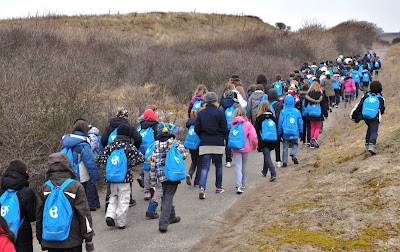 Students from years 5 and 6 at the International School of The Hague (ISH) sought sponsors and then walked a six-kilometer trek through the nearby coastal dunes. They each carried six heavy liters of bottled water in a blue backpack as they raised money to benefit a clean-water program in Bangladesh.